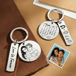 Personalized Photo and Calendar Leather Keychain with Custom Text Christmas Gifts for Him40% OFF -