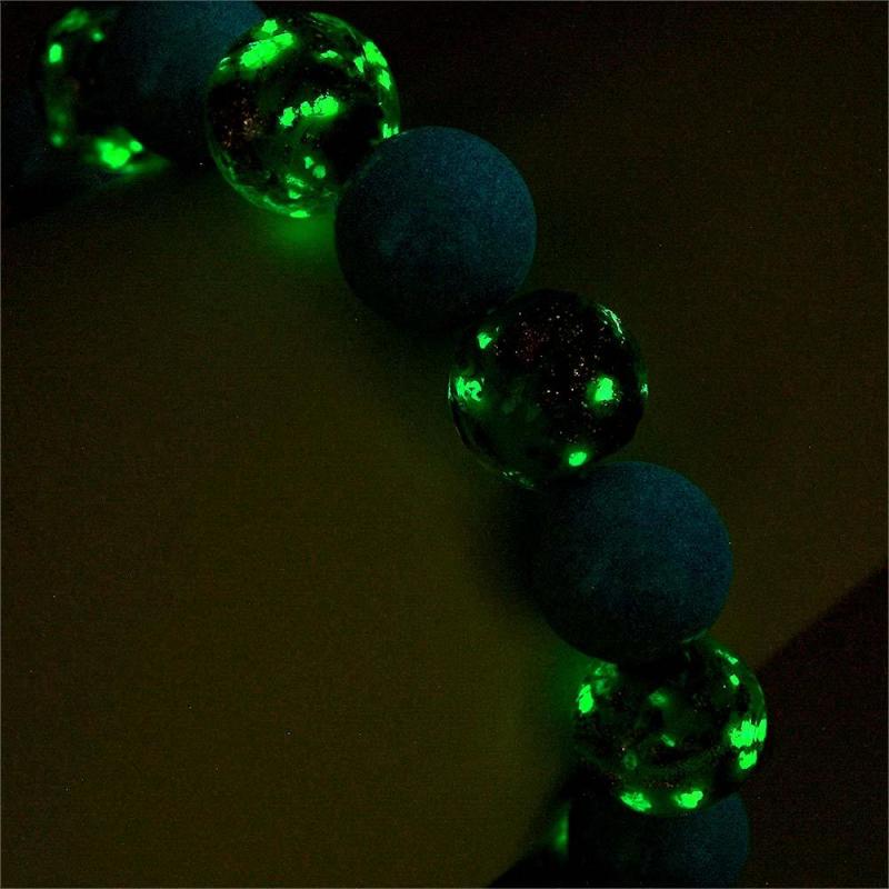 Army Green Firefly Glass Stretch Beaded Bracelet Glow in the Dark Luminous Bracelet