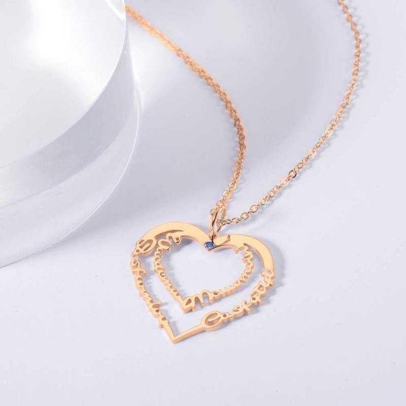Custom Birthstone Name Necklace, Unique Gift Rose Gold Plated