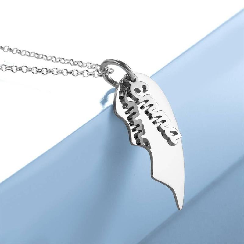 Couple's Necklace, Name Necklace Broken Heart Silver