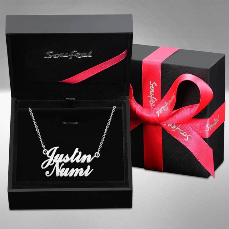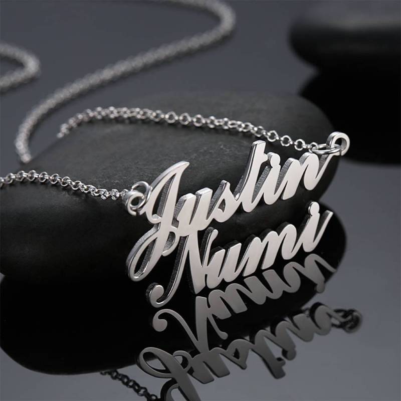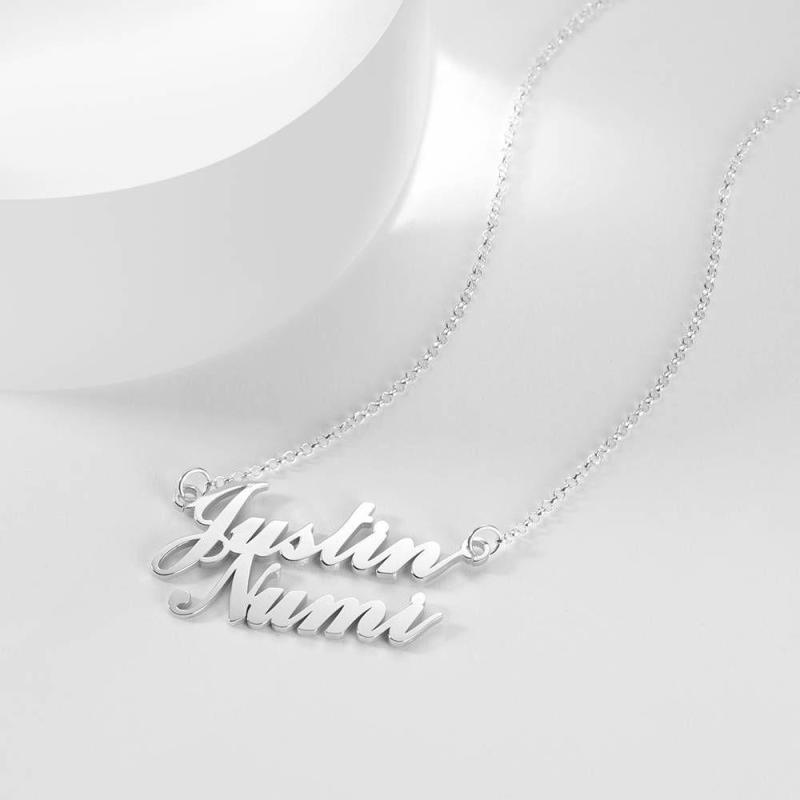 Couples Gift Name Necklace Two Names Classic Style Silver