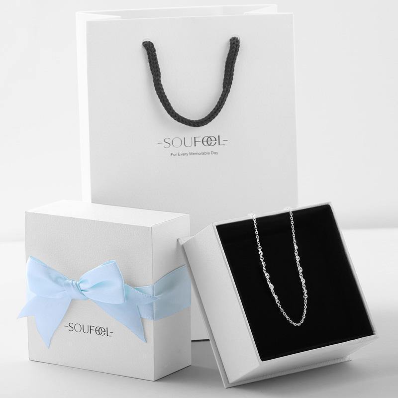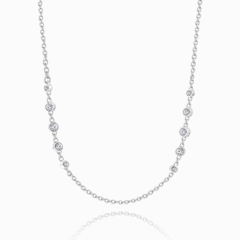 17.7in Silver Cable Chain Basic Necklace With CZ Beads - Length Adjustable