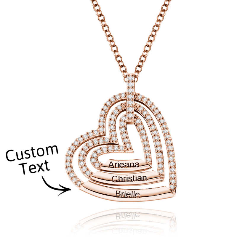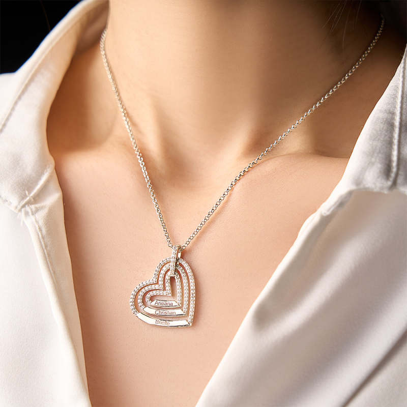 Custom 3 Names Necklace Gold Personalized Engraved 2 Name Promise Heart Necklace Anniversary Family Jewelry Gifts for Her