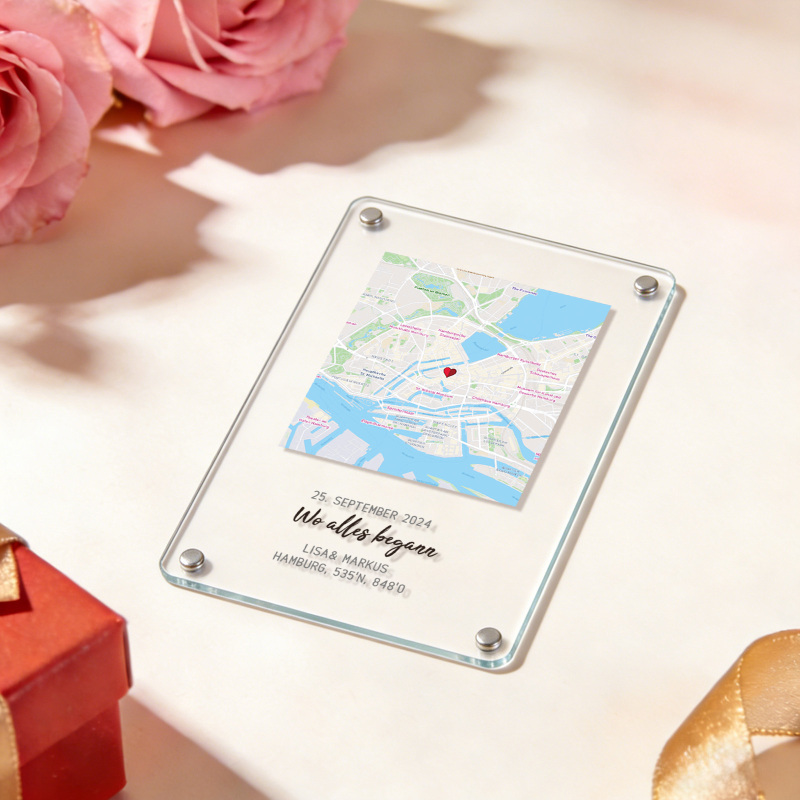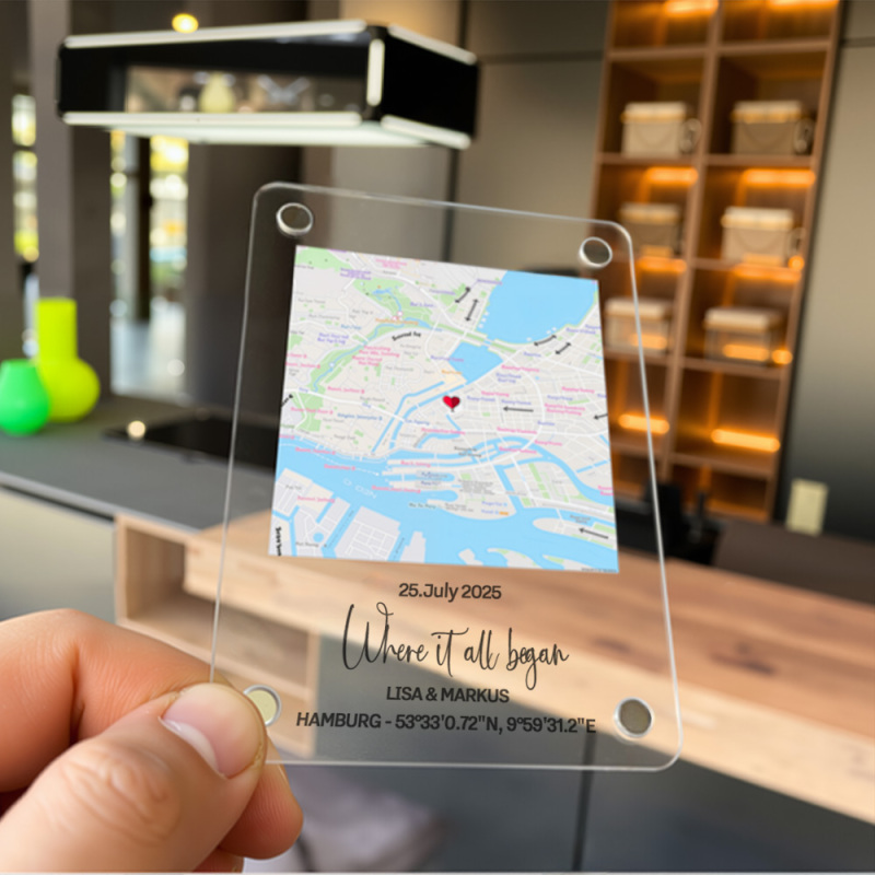 Custom Acrylic Location Magnet for Fridge – Personalized Map Travel Valentine's Day Gift