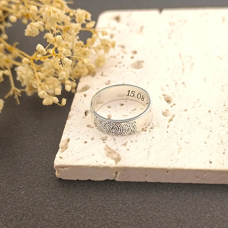 Custom Actual Fingerprint Band Ring Personalized Men Thumb Print Band Gift for Him