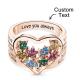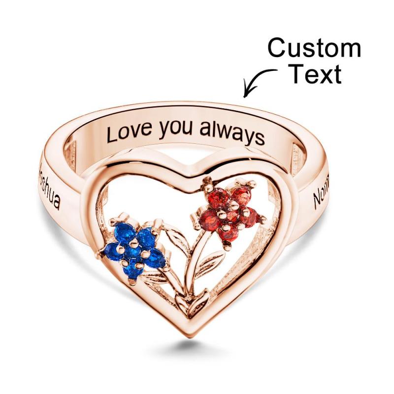 Custom Birthstone Engraved Rings Creative Flowers Rose Gold Gifts