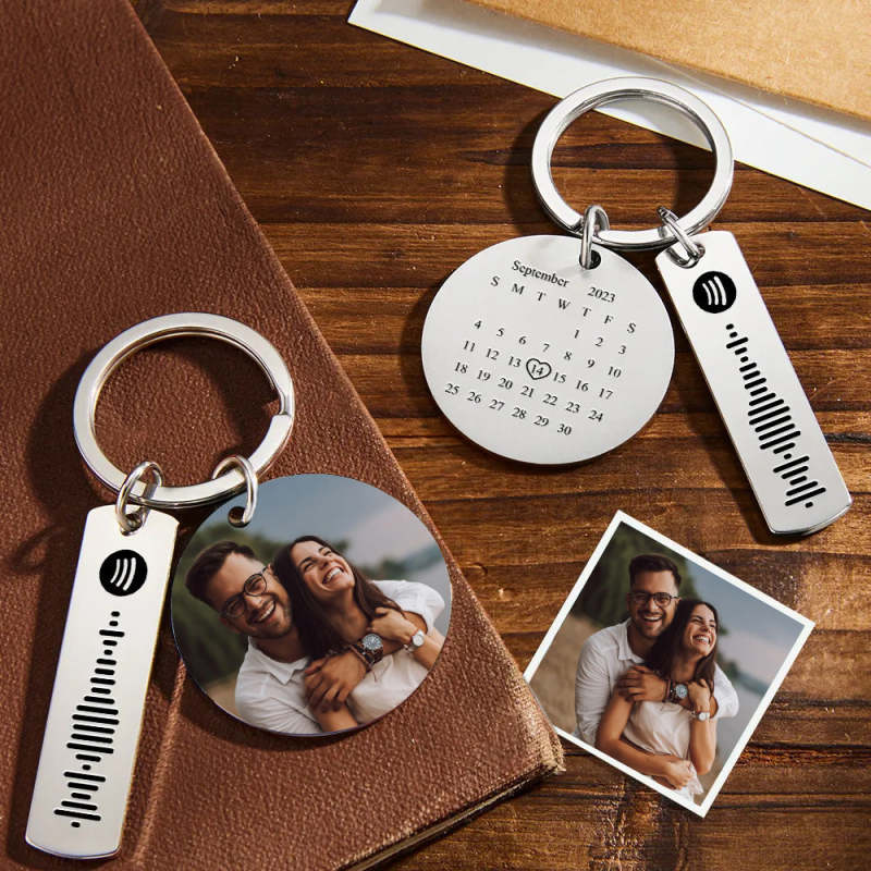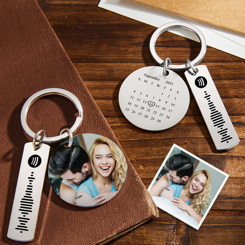 Personalized Stainless Steel Keychain Featuring Custom Colorful Photo Calendar And Spotify Keychain Gift Gor Lover