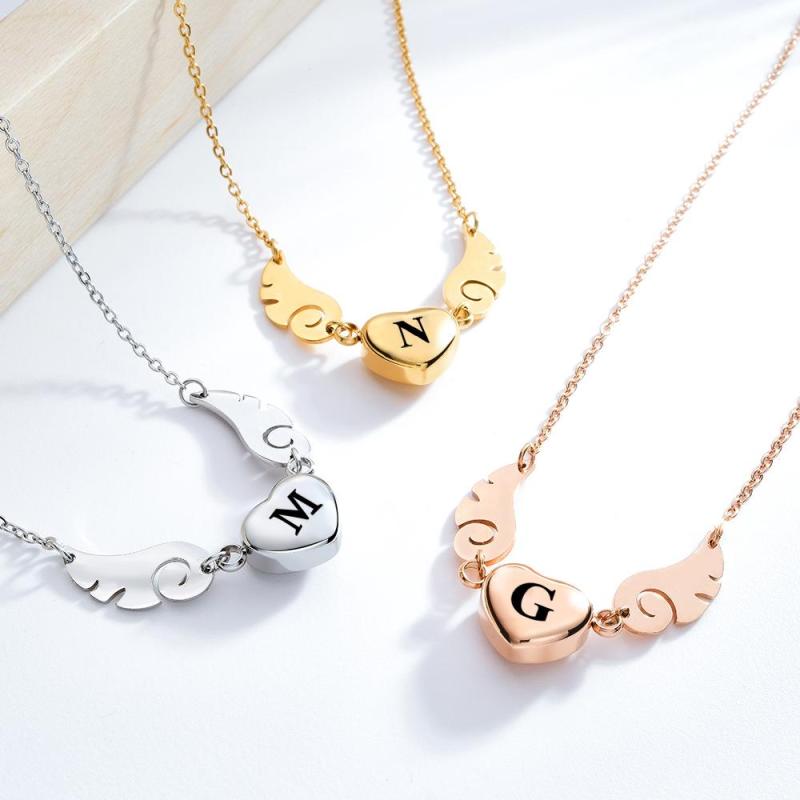 Custom Engraved Angel Wings Necklace With Letter Heart Charm Jewelry Gifts For Her