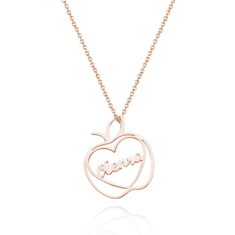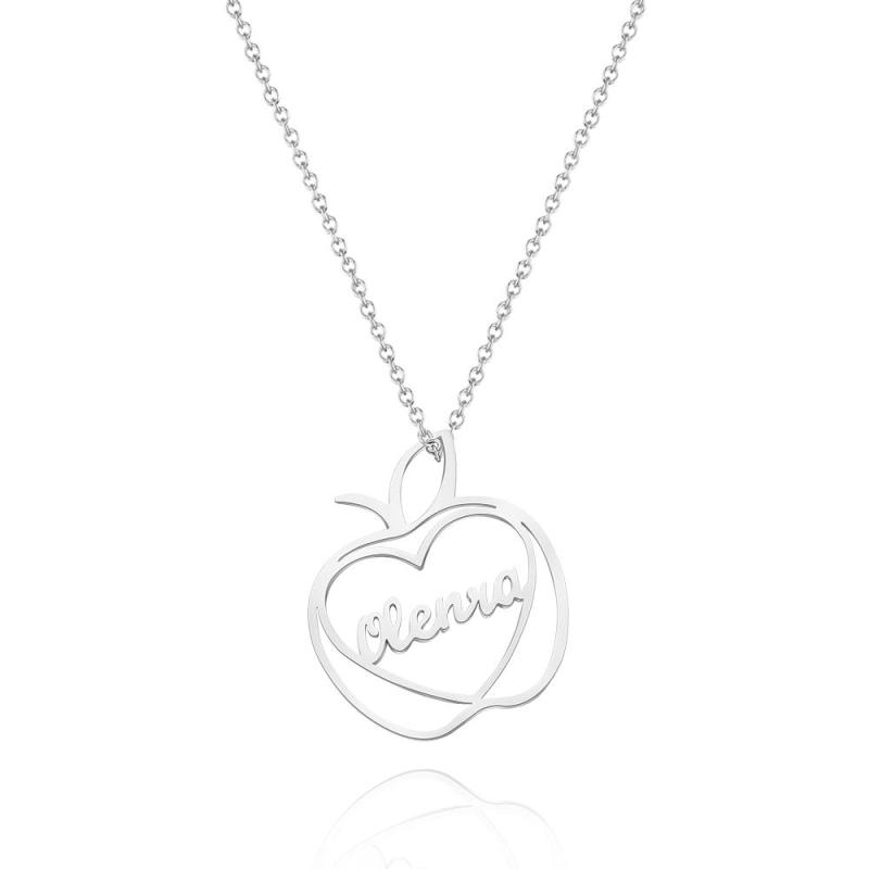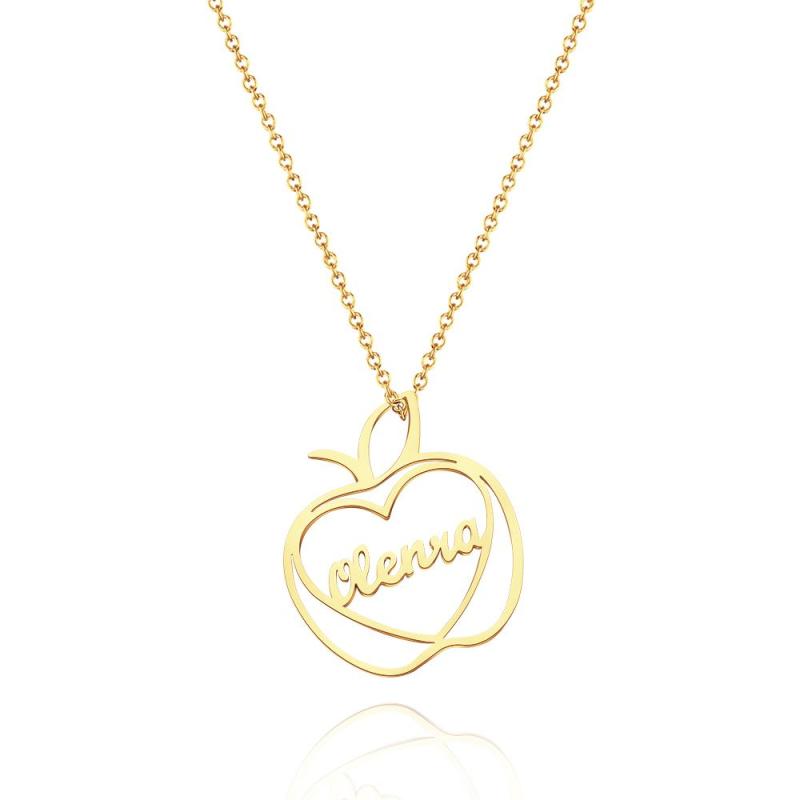 Custom Engraved Apple Name Necklace Stamped Jewelry with Apple Charm