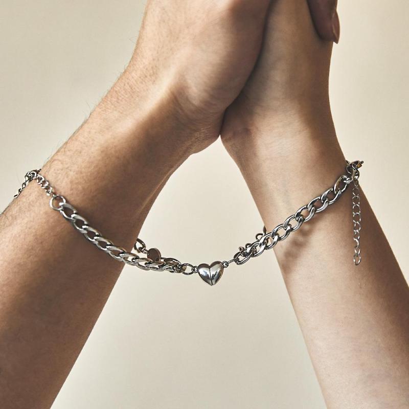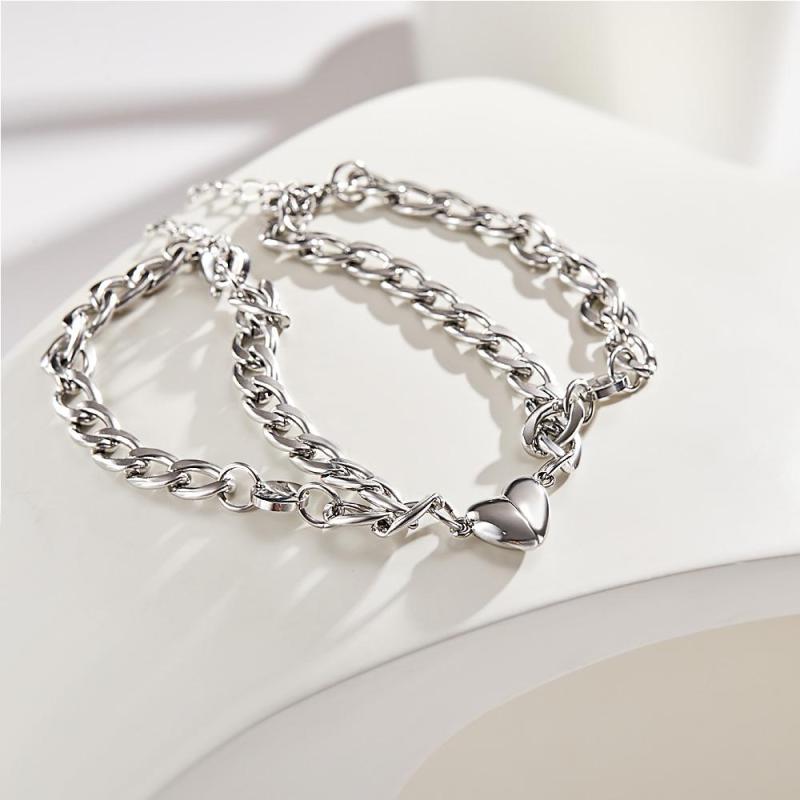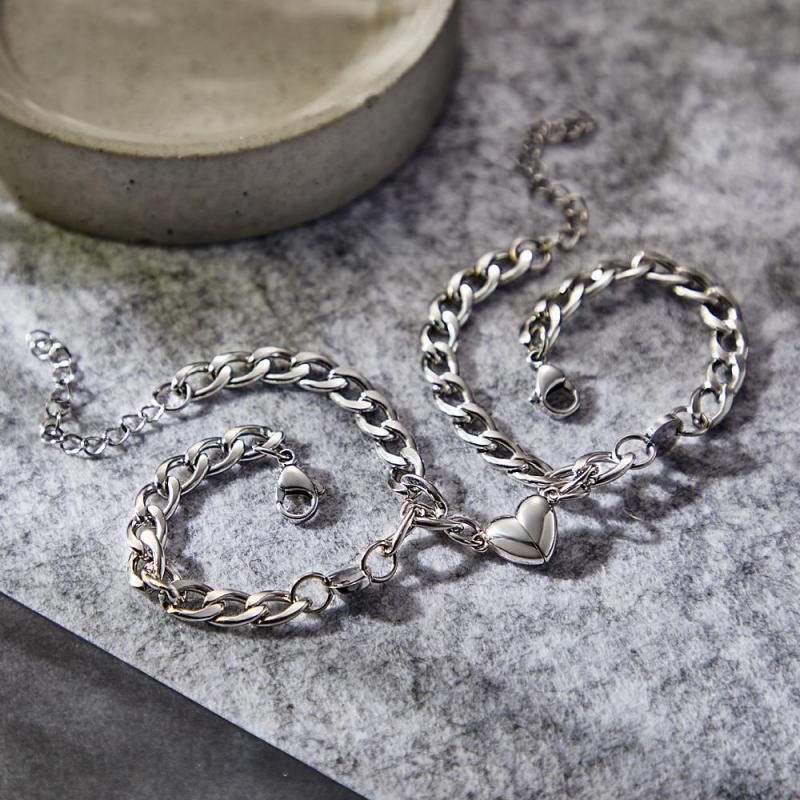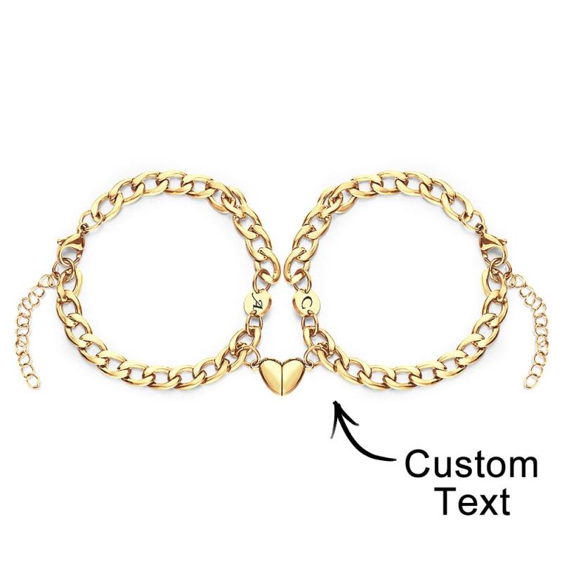Custom Engraved Bracelet Personalized Letter Couples Cuban Magnetic Bracelet Set