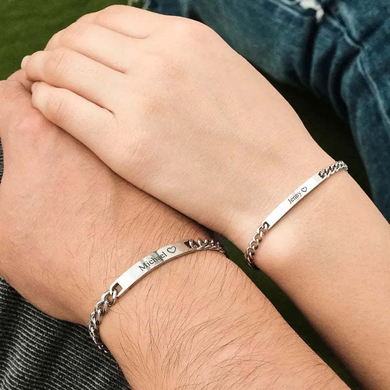 Custom Engraved Bracelet Set Personalized Fashion Bracelet For Couples Unique Personalized Bracelets for Valentines' Day Gifts