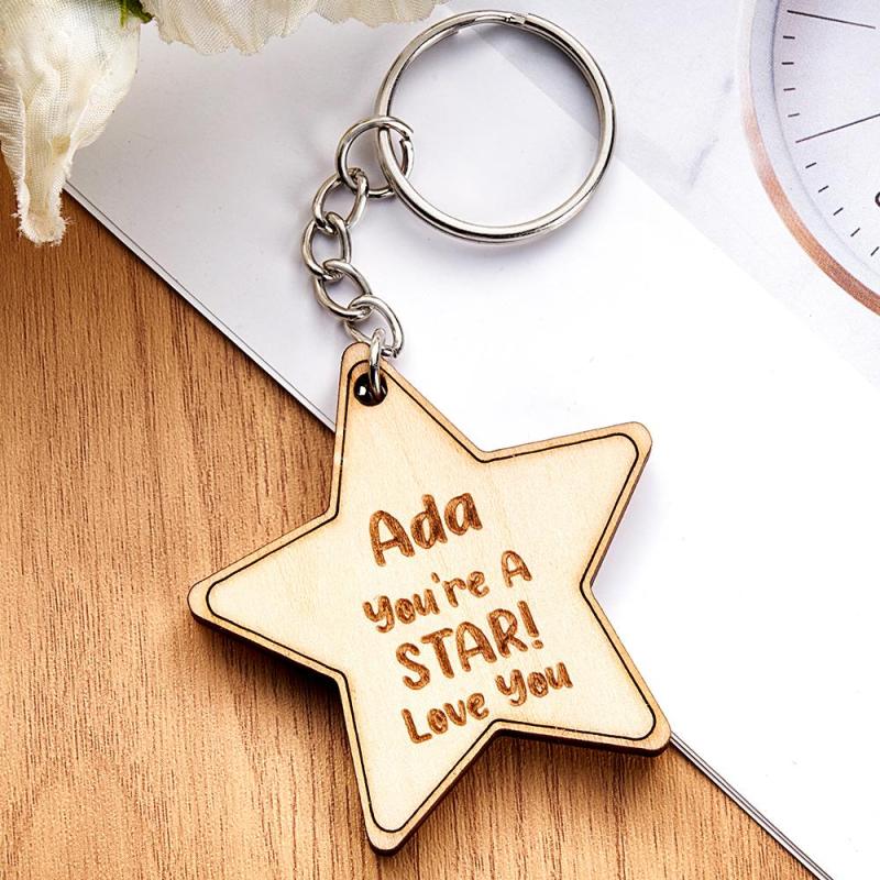 Custom Engraved Keychain Pentagram Creative Wooden Gifts