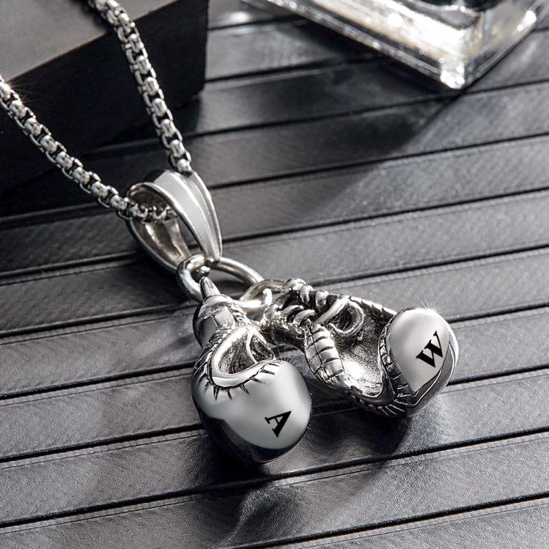 Custom Engraved Necklace Hip Hop Boxing Gloves Gift for Him