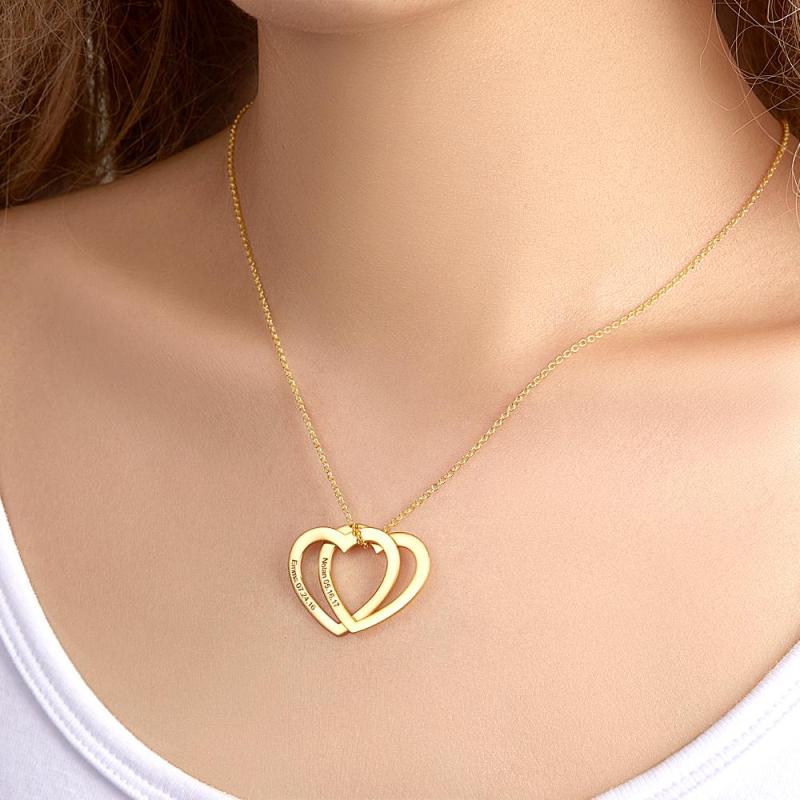 Custom Engraved Necklace Two Heart Necklace Gift for Her