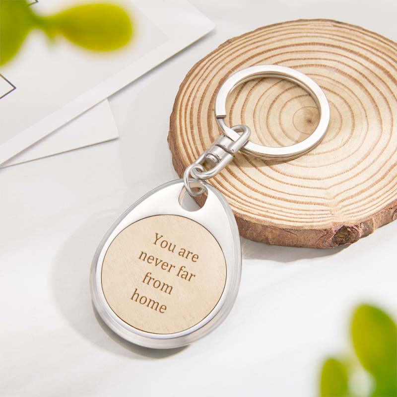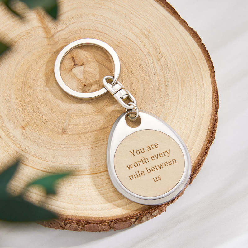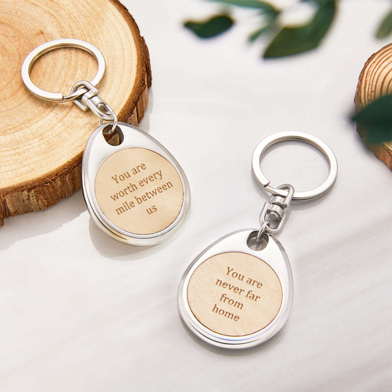 Custom Engraved Wooden Metal Keychain Personalized Text Anniversary Gifts