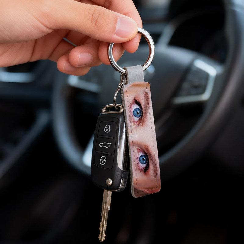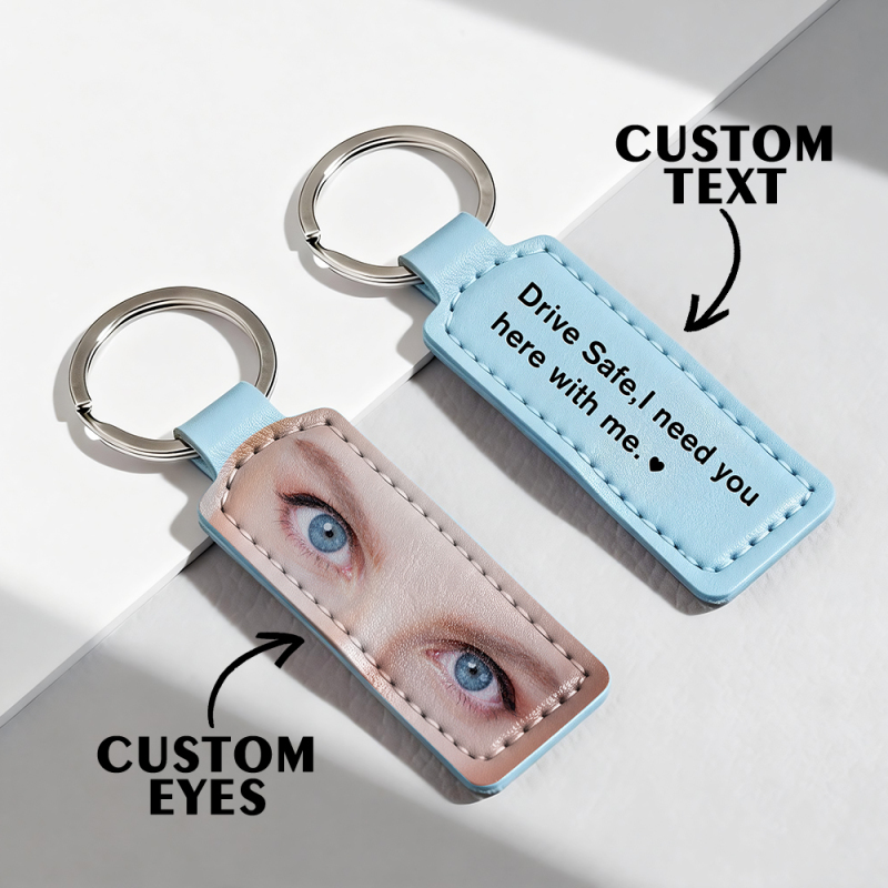 Custom Eyes Keychain Personalized Photo Leather Keyring Drive Safe Keychian for Boyfriend Anniversary Valentine's Day Gift