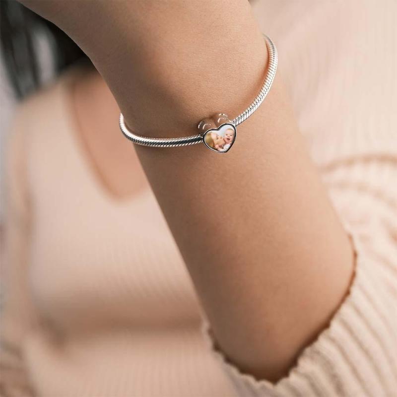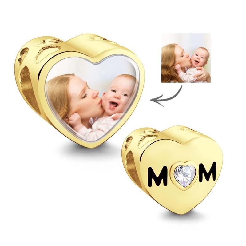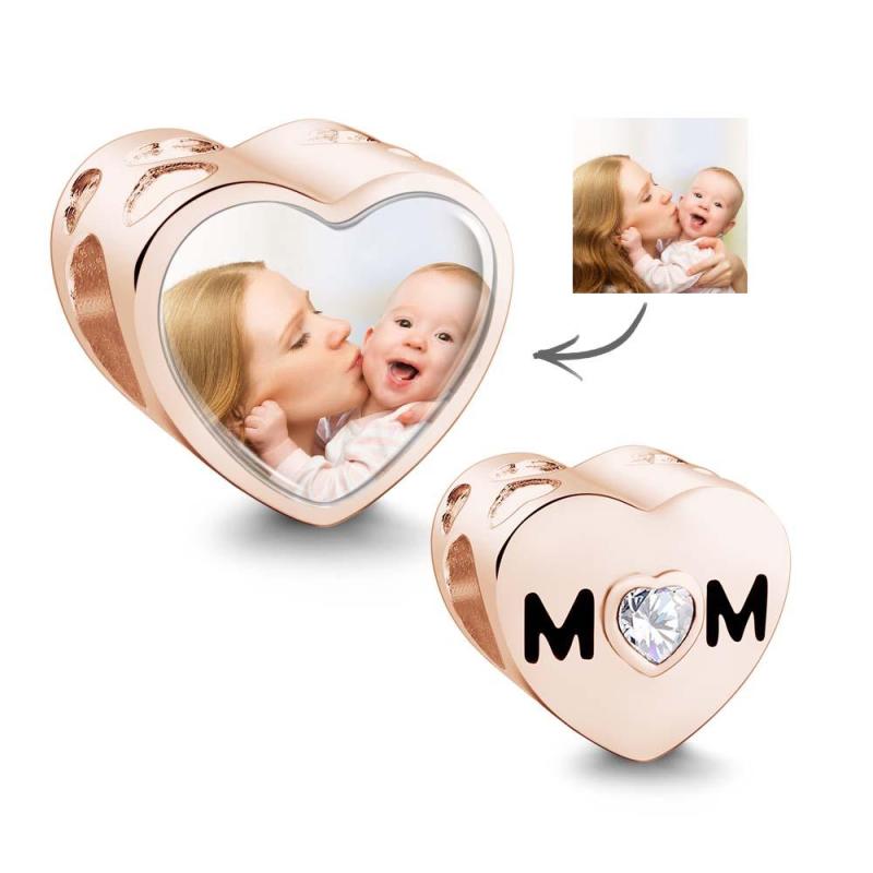 Custom Heart Photo MoM Theme Charm With White Zircon Love Heart Jewelry Mother's Day Gifts