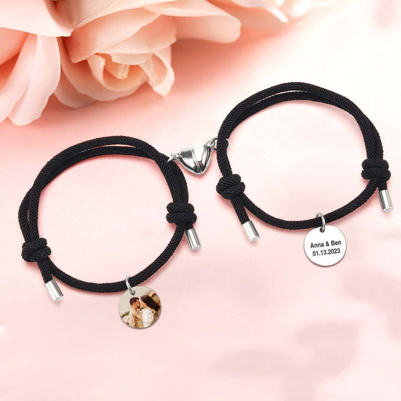 Custom Magnetic Couple Weave Bracelet Set Gift for Couples Best Friends