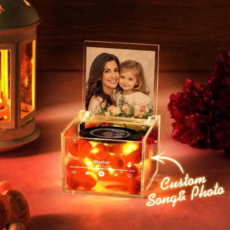 Custom Mini Vinyl Record Player Automatic Music Player Custom Photo Cover Style Engraved Mother's Day Gift for Mum