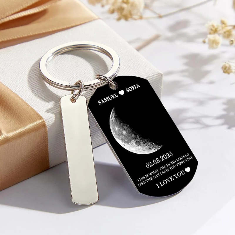 Custom Moon Phase Tag Keychain Personalized Spotify Custom Picture & Music Song Code Couples Photo Keyring Valentine's Day Gift
