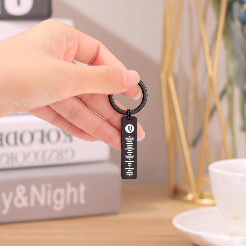 Custom Music Spotify Plaque Code Keychain Stainless Steel Black