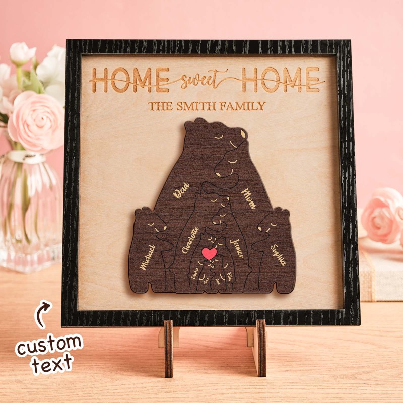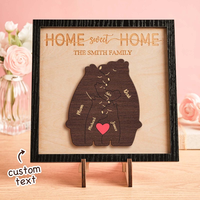 Custom Name Bear Family Puzzle Wooden Frame Personalized Wooden Home Decorations Motther's Day Gift
