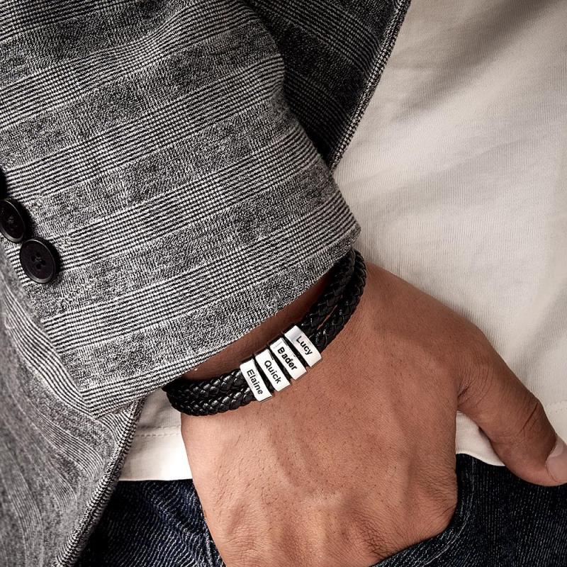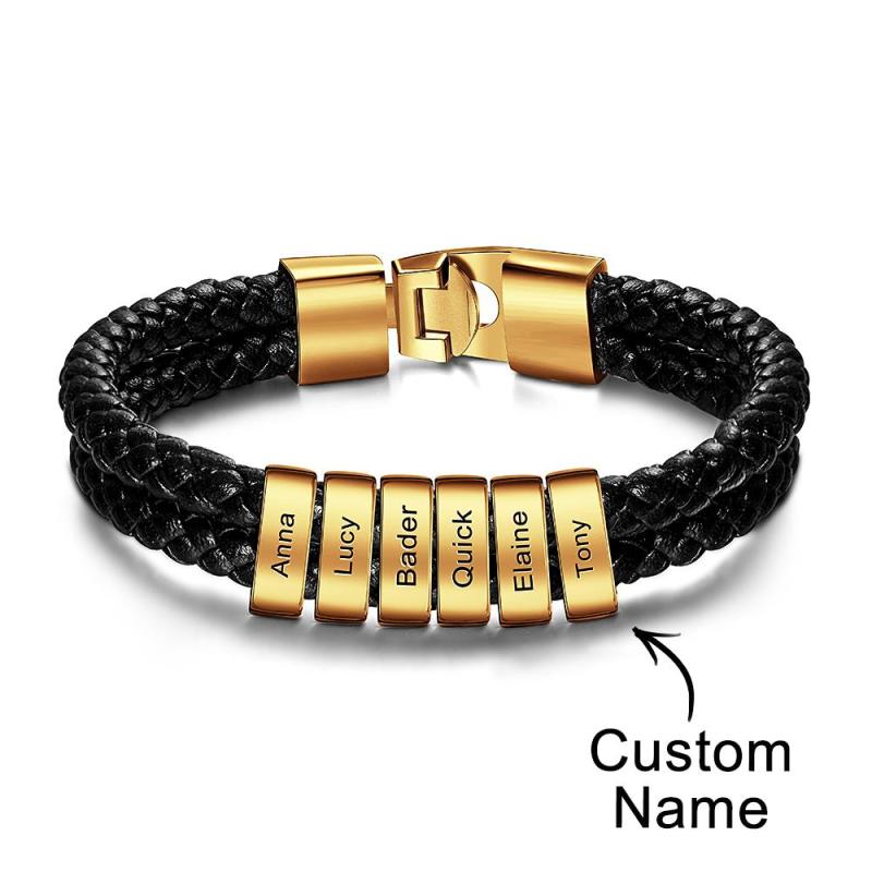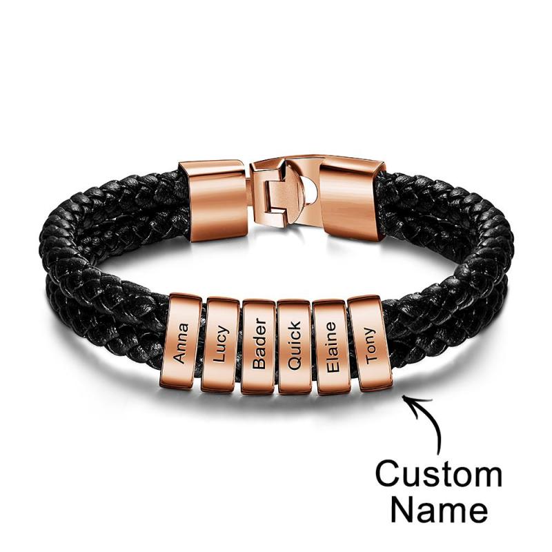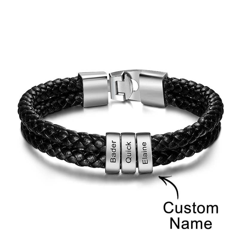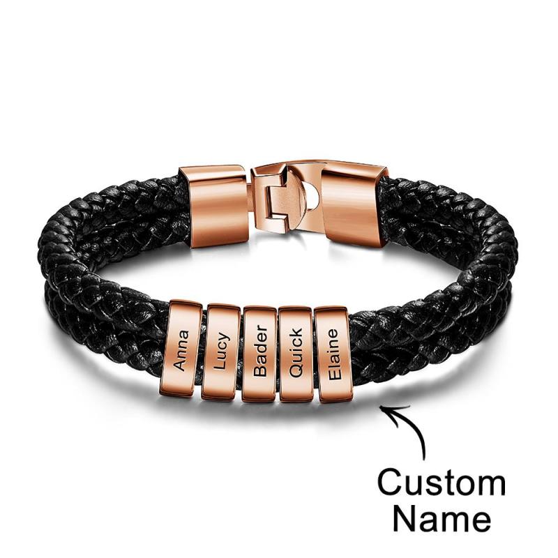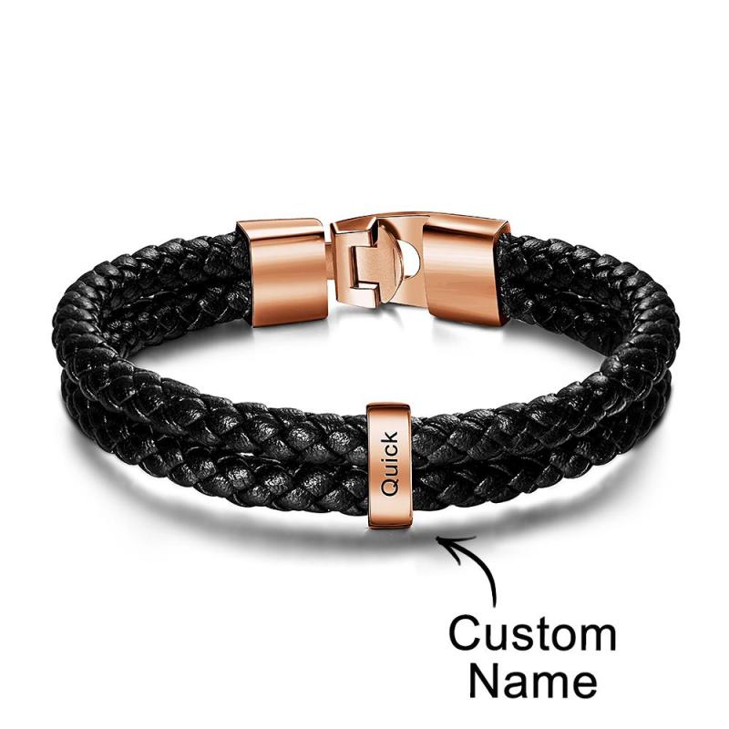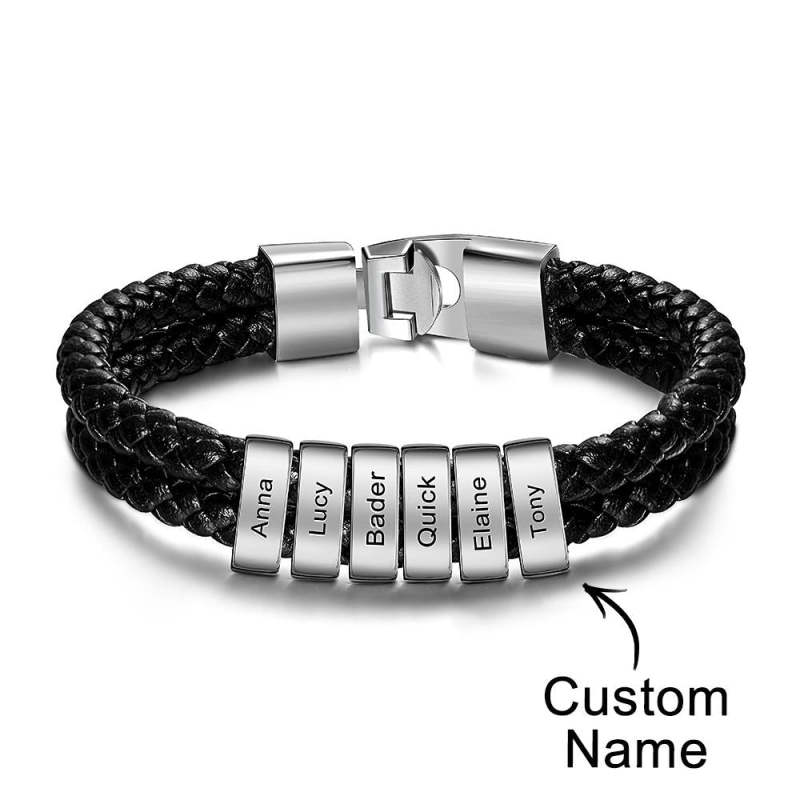 Custom Name Bracelet Braided Leather Personalized Gifts for Men