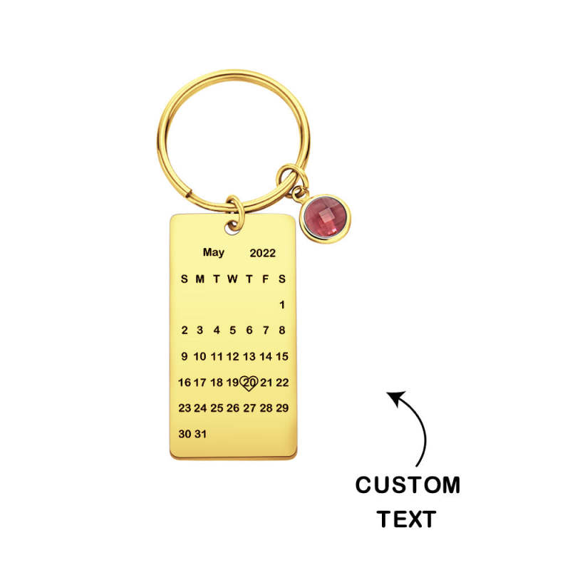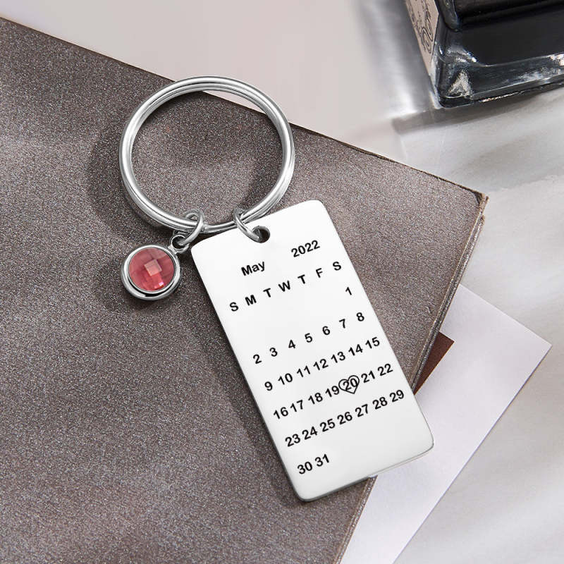 Custom Name Calendar Birthstone Keychain Personalized Date Birthday Gifts