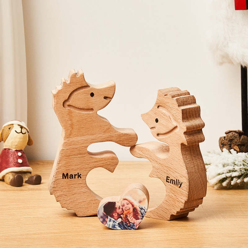 Custom Name Love Wooden Hedgehogs Puzzle for Couple Home Decor Christmas Gifts