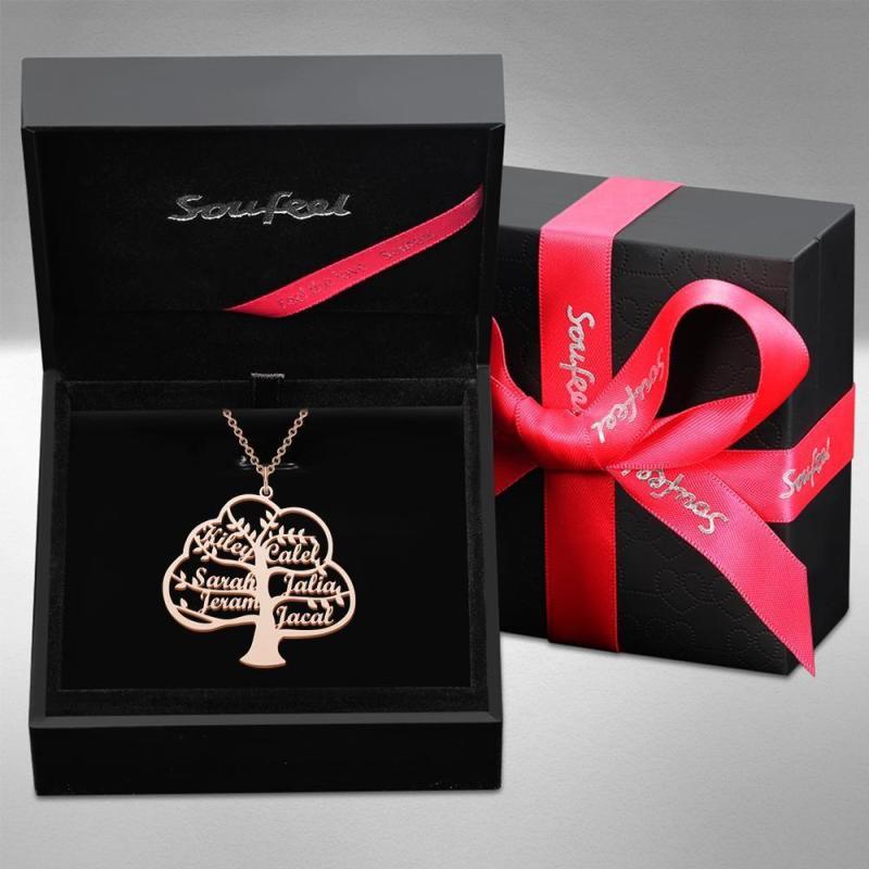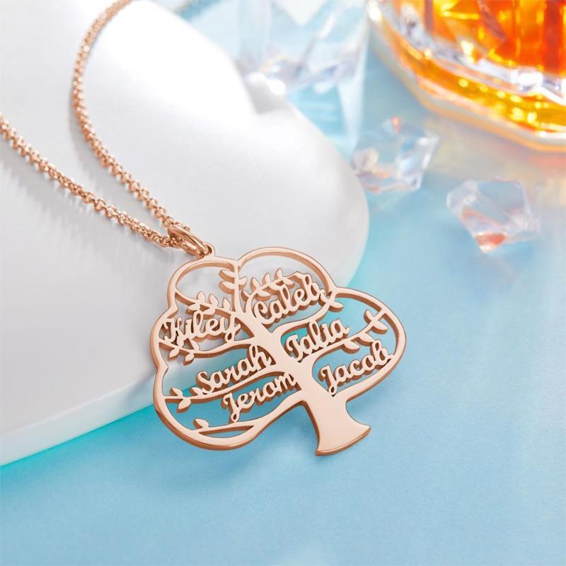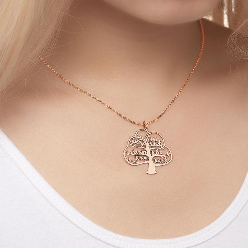 Custom Name Necklace Family Tree of Life Necklace Name Pendant Memorial Gift Rose Gold Plated Silver 1-6 Names