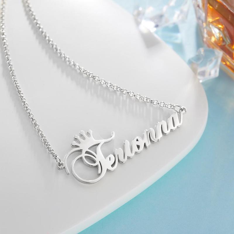 Custom Name Necklace with Crown Necklace for Girlfriend Friendship Gifts Silver