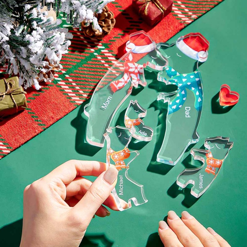 Custom Names Christmas Hugging Bear Family Acrylic Bear Family Puzzle Home Decor Christmas Gifts