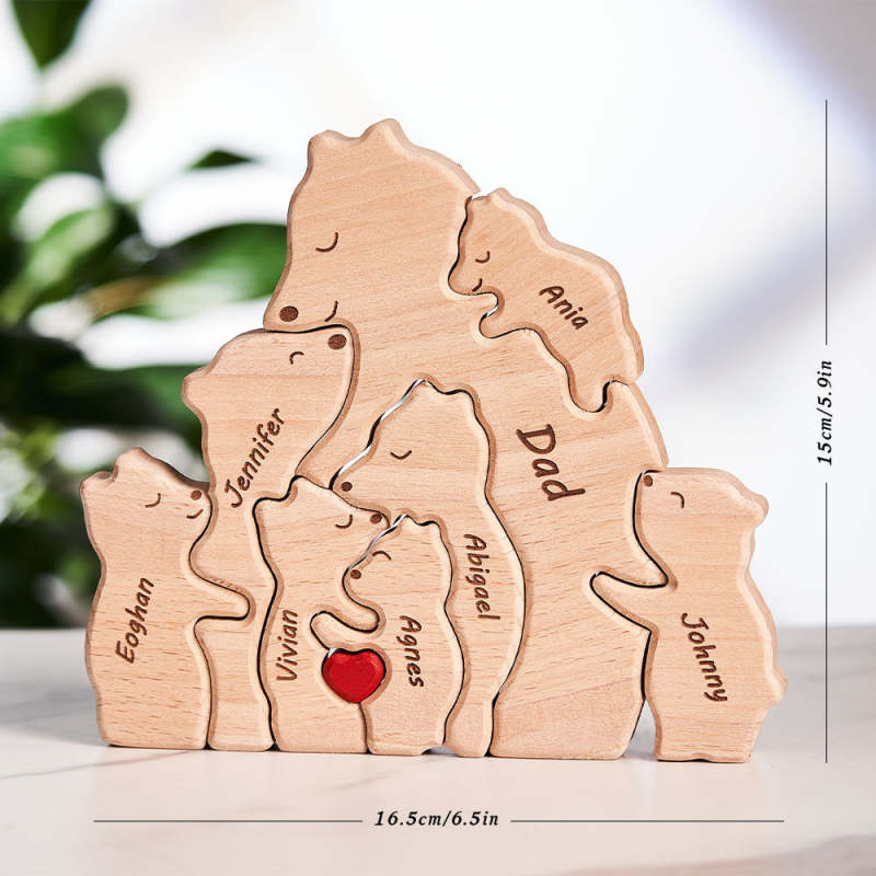 Custom Names Wooden Single Parent Bears Family Block Puzzle Home Decor Gifts