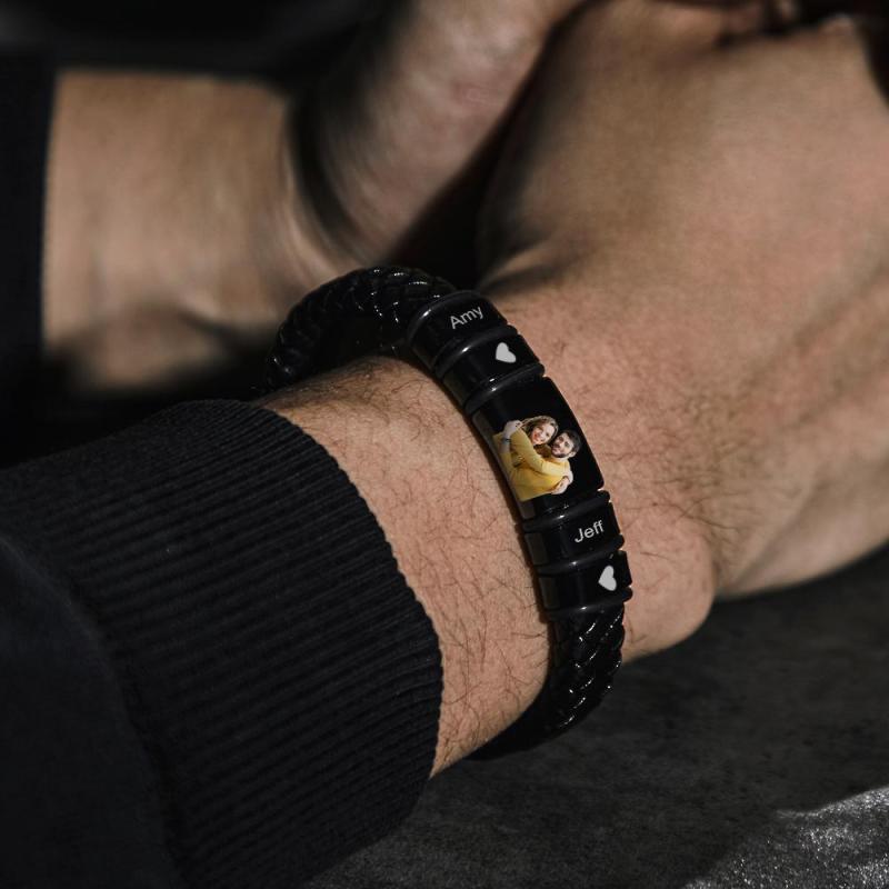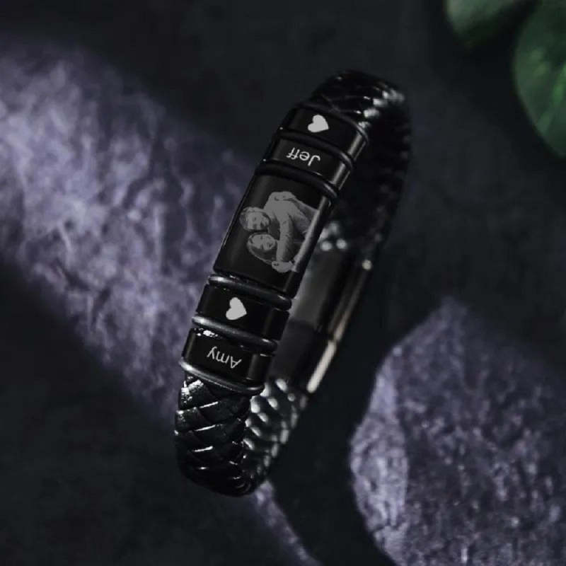 Custom Photo Engraved Bracelet Leather Bracelet Men's Bracelet Anniversary Gifts for Him