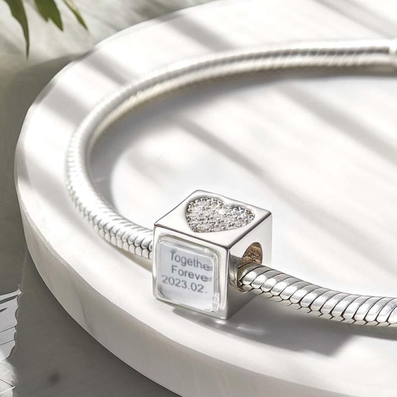 Custom Photo Engraved Charm Square Heart Diamond Romantic Gifts
