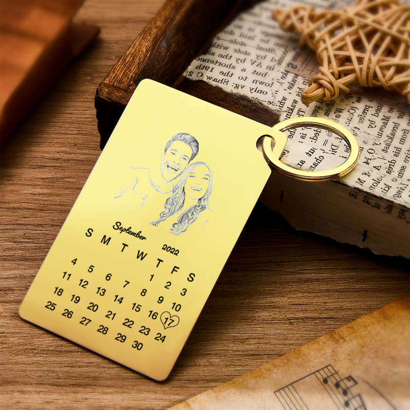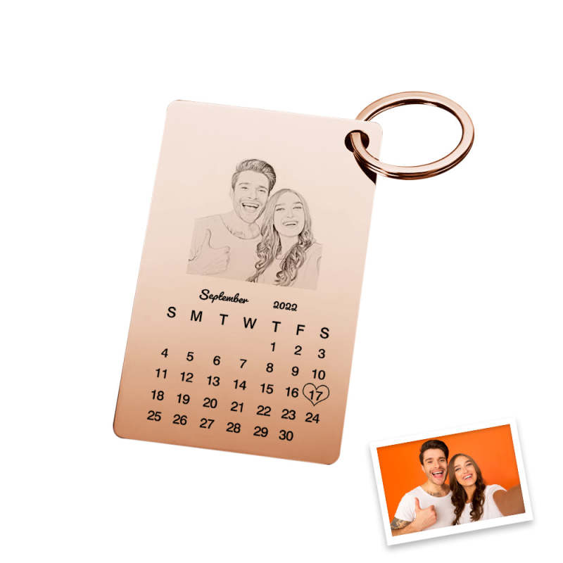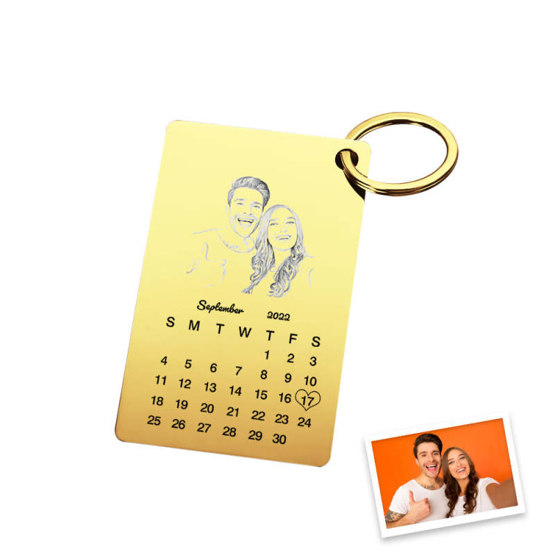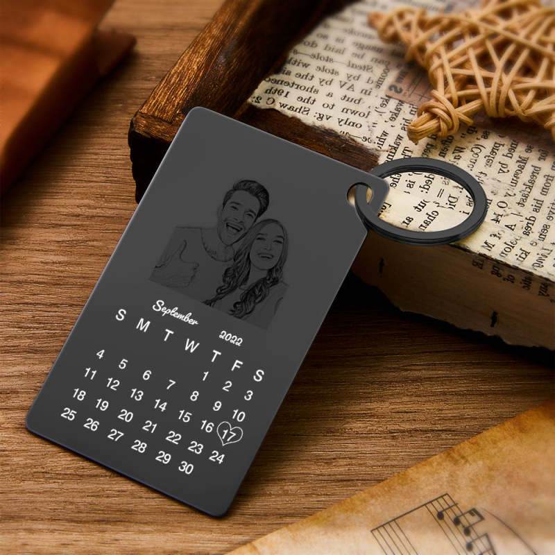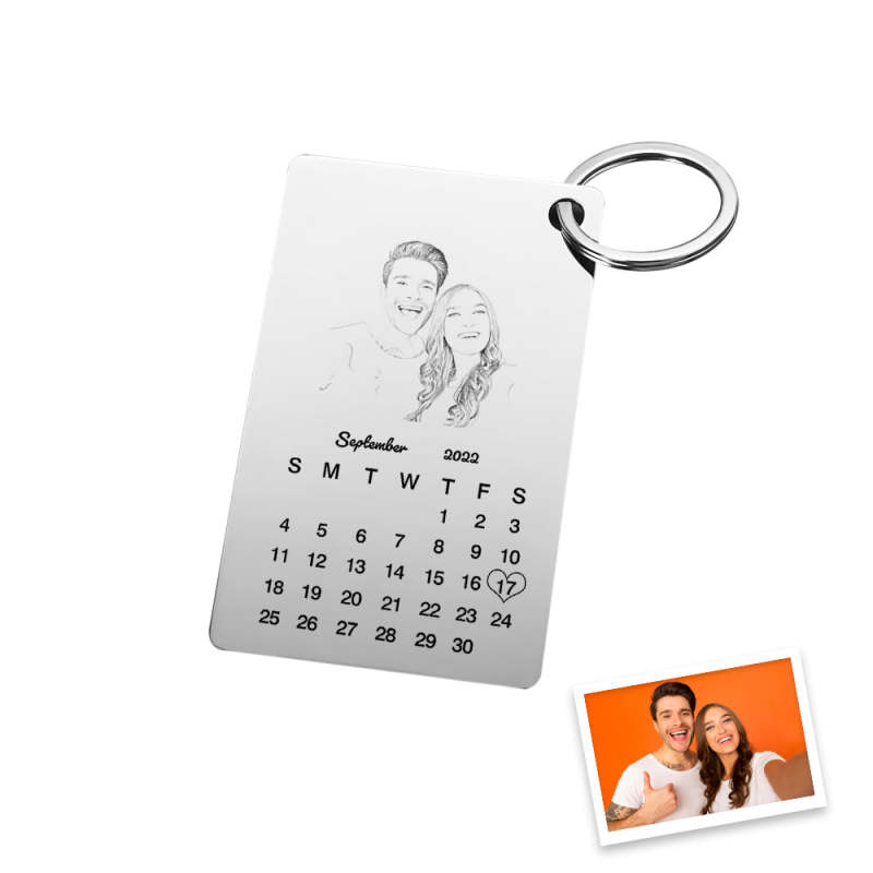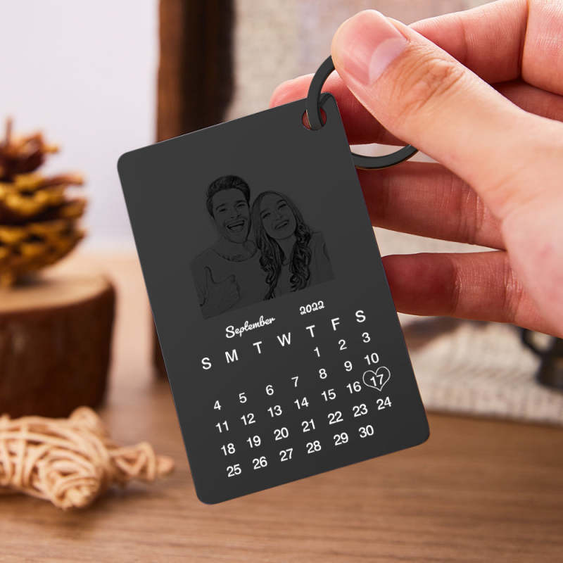 Custom Photo Engraved Keychain Calendar Keychain Personalized Keychain Wedding Anniversary Gift