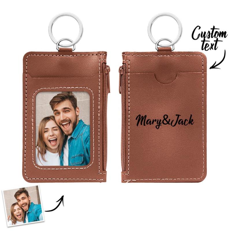 Custom Photo Engraved Keychain Leather Card Holder Creative Gifts