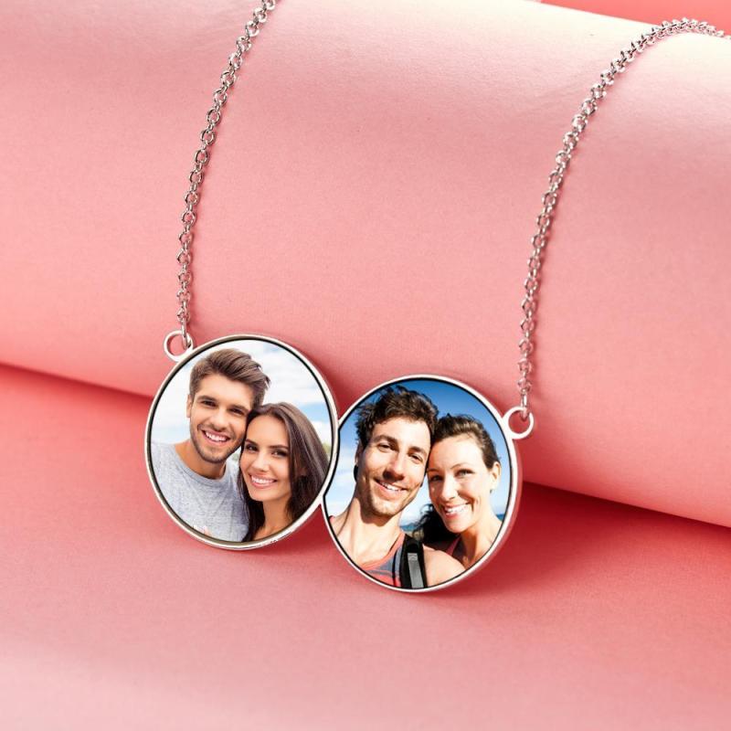Custom Photo Necklaces Horizontal Double Round Photo Pendant