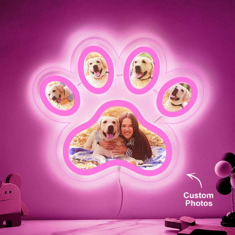 Custom Photo Pet Paw Neon Lamp Personalized Memorial Adjustable Brightness Night Light Gifts For Her