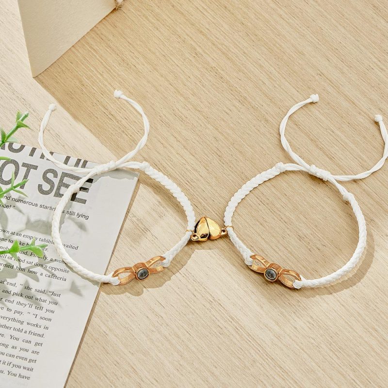 Custom Photo Projection Bracelet Woven Heart Magnetic Bracelet Gift for Couple