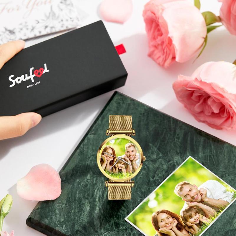 Custom Photo Watch Engraved Watch Alloy Strap Golden