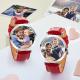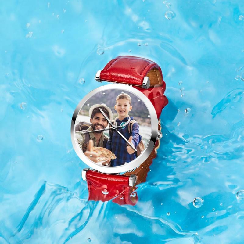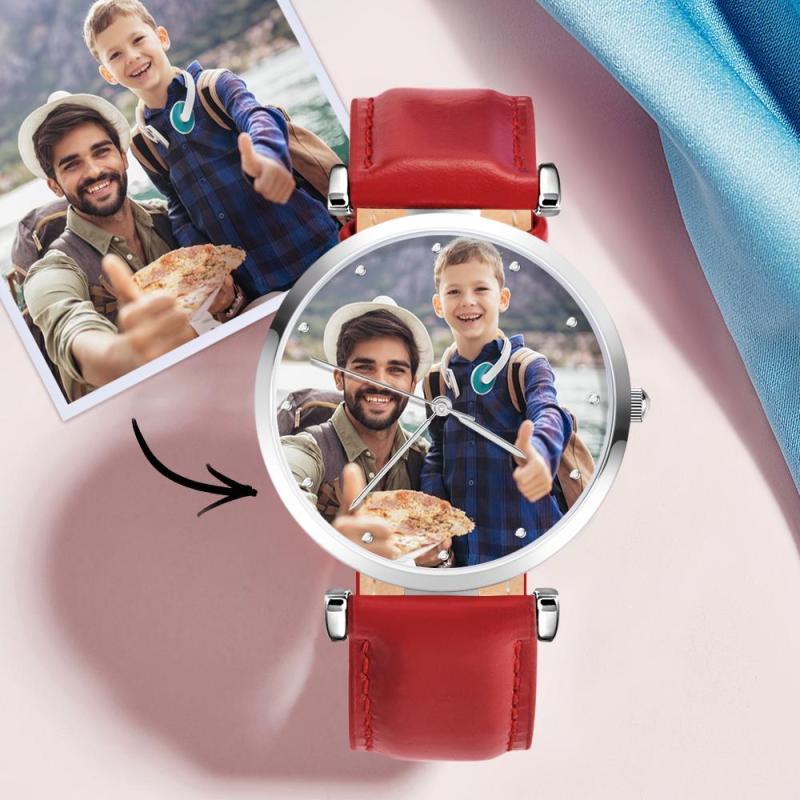 Custom Photo Watch Personalized Engraved Watch Red Strap Birthday Gift For Family For Husband