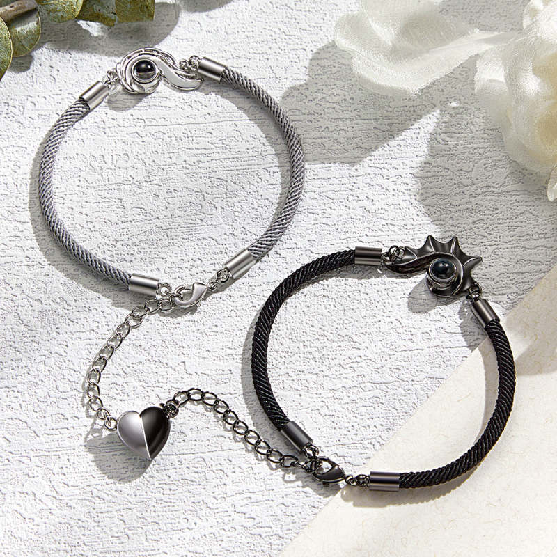 Custom Projection Couple Bracelet Magnetic Heart Gift