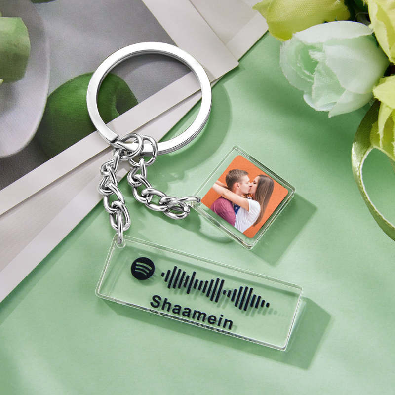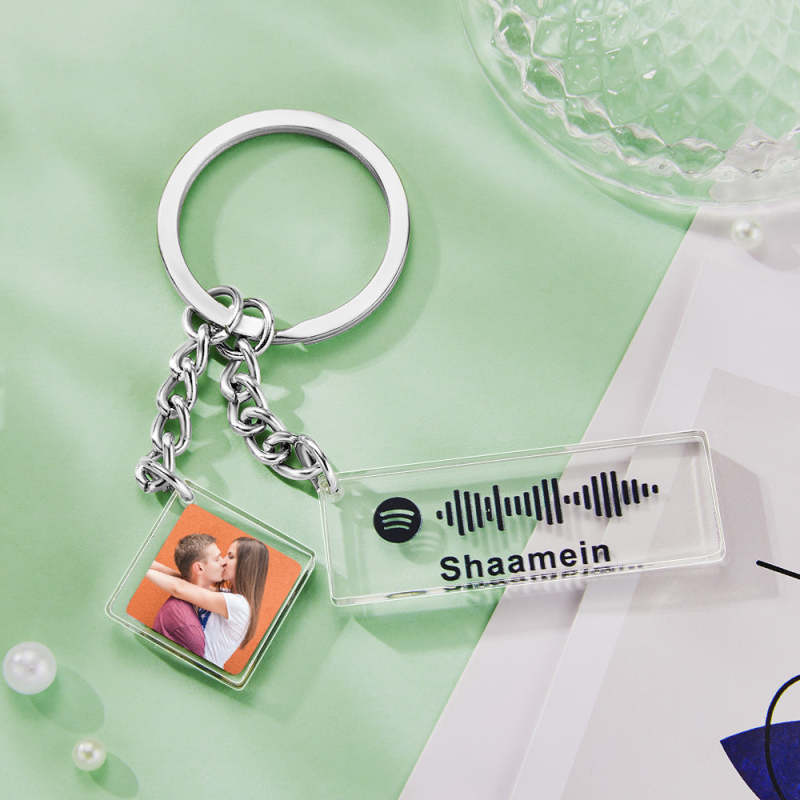 Custom Spotify Code Keychain Photo Engraved Keychain Valentine's Day Gift for Couple