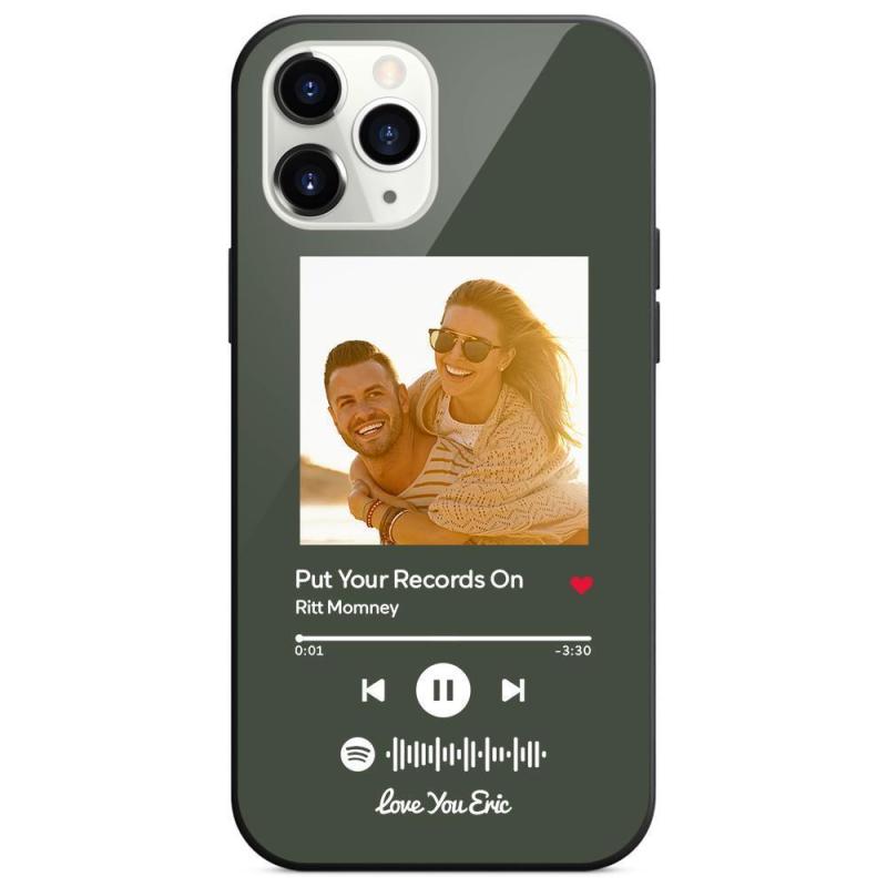 Custom Spotify Code Music iPhone Case with Text Scannable Engraved Custom Music Song Tempered Glass - Dark Green