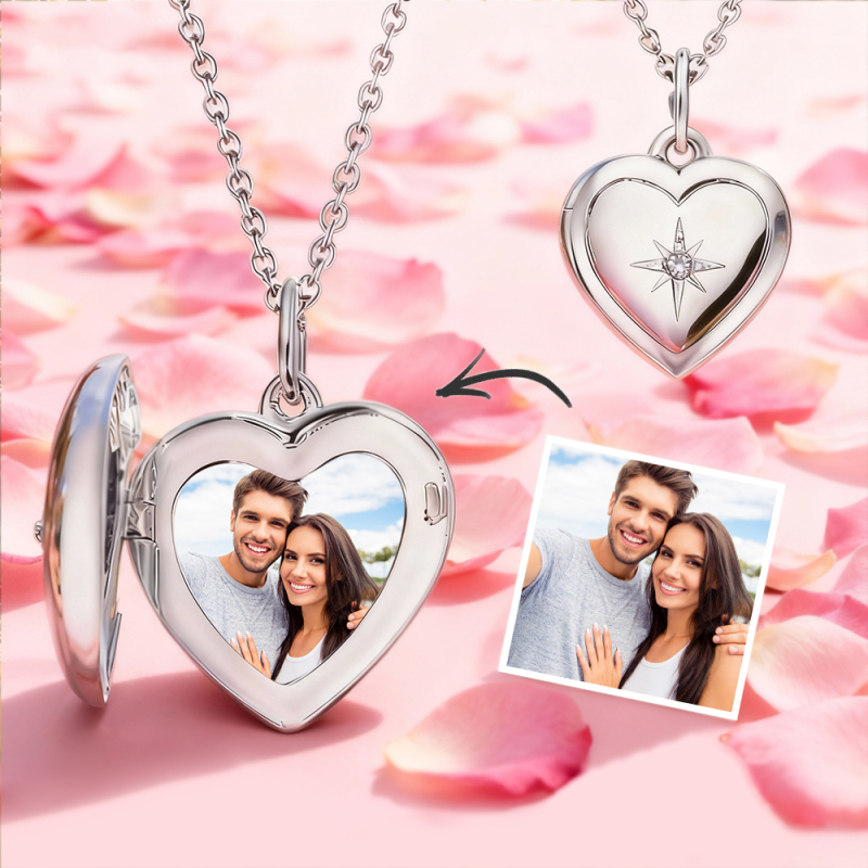 Custom Star Photo Locket Necklace – Personalized Platinum Jewelry