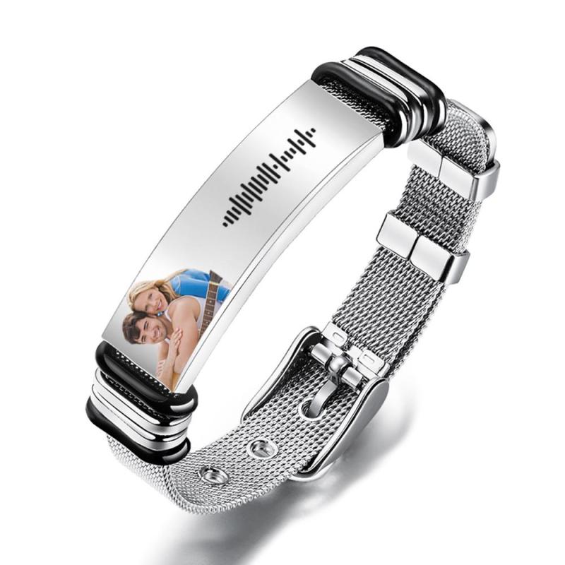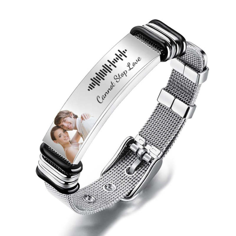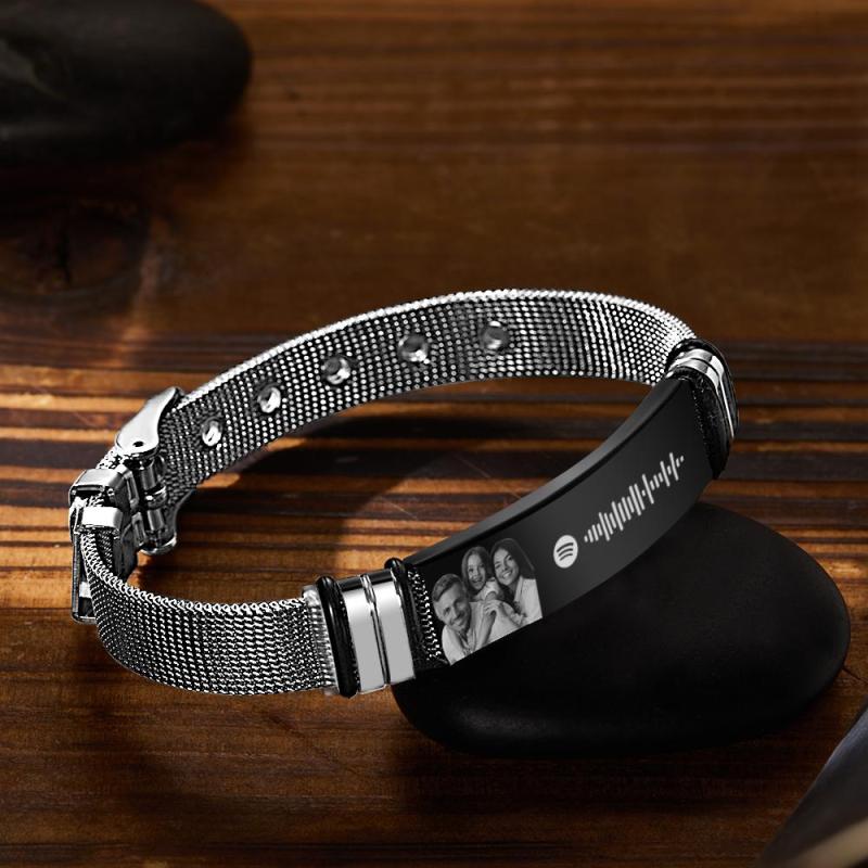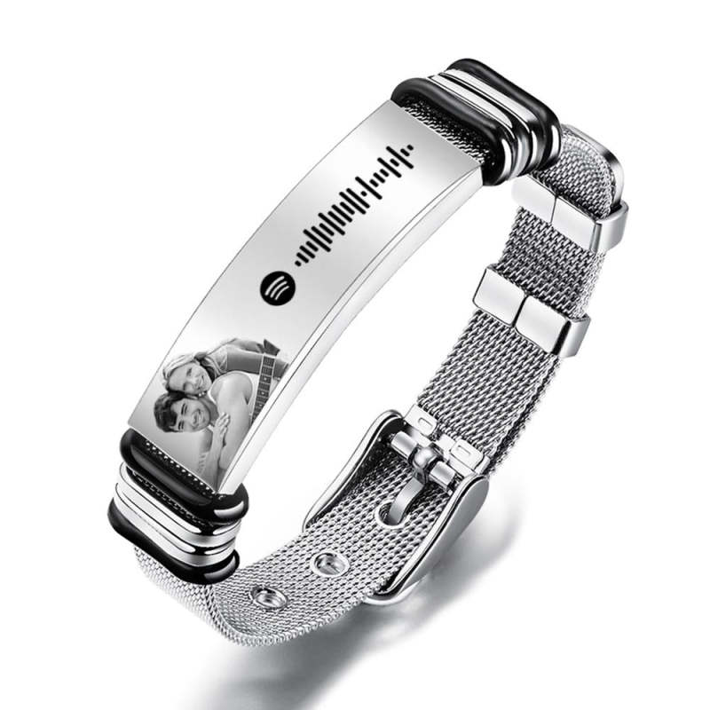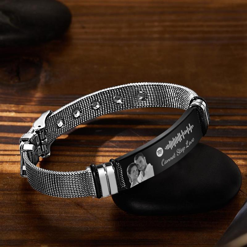 Customized Optional Photo Engraved Spotify Music Stainless Steel Bracelet Best Gifts For Men Gifts For Couples