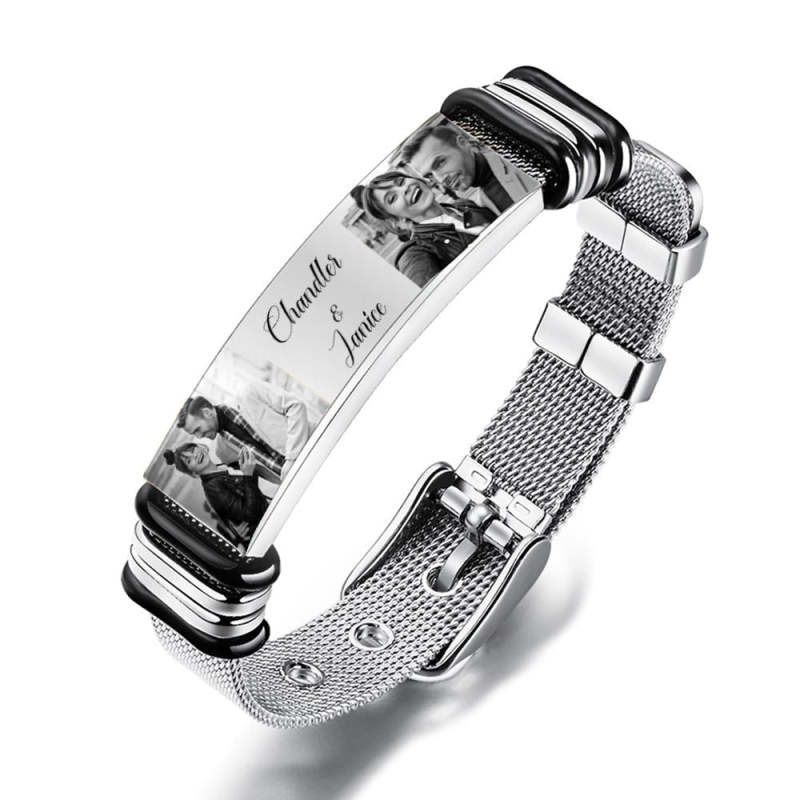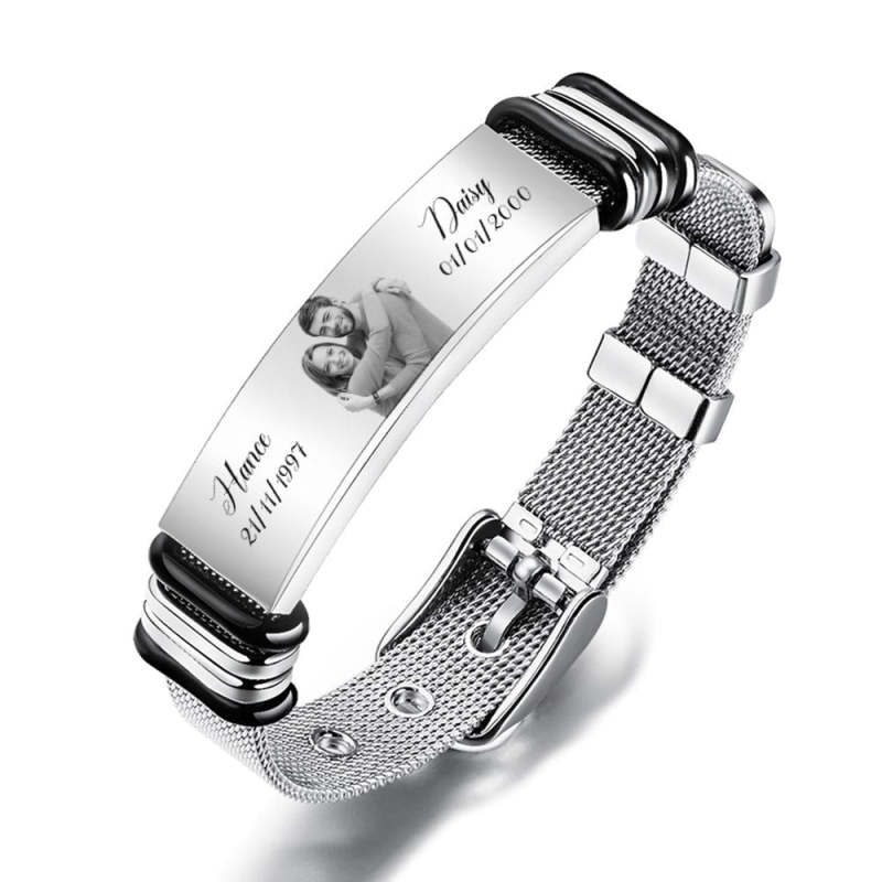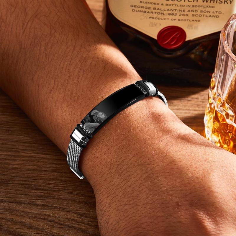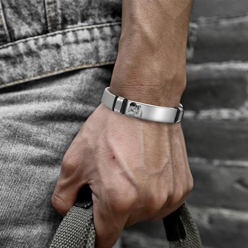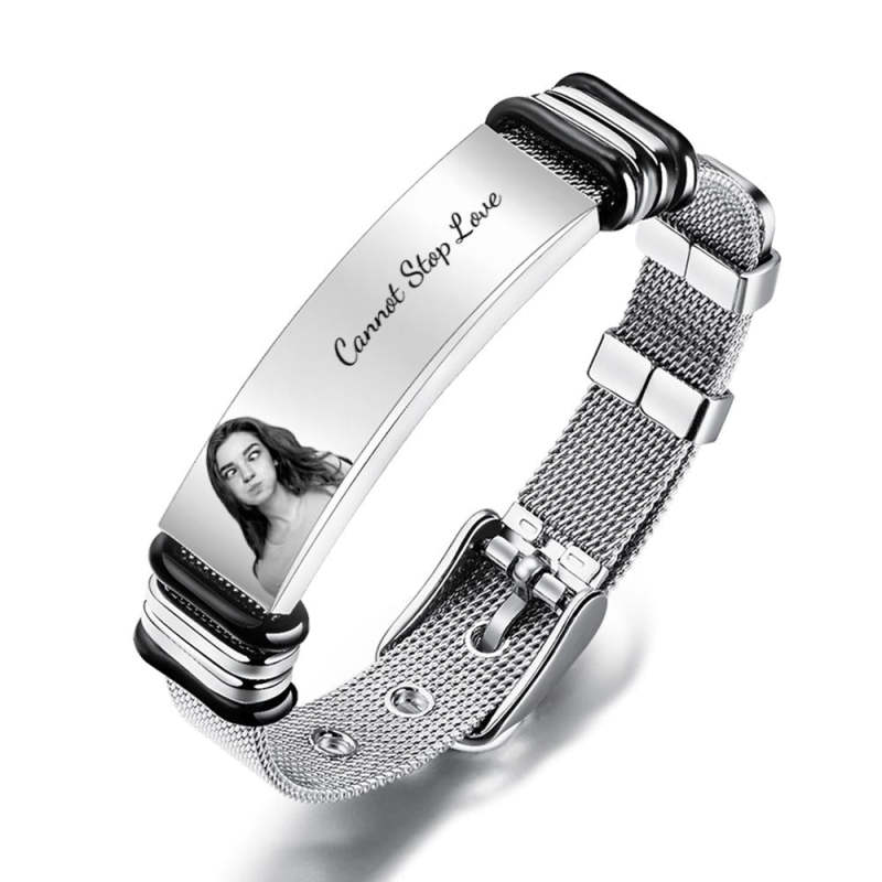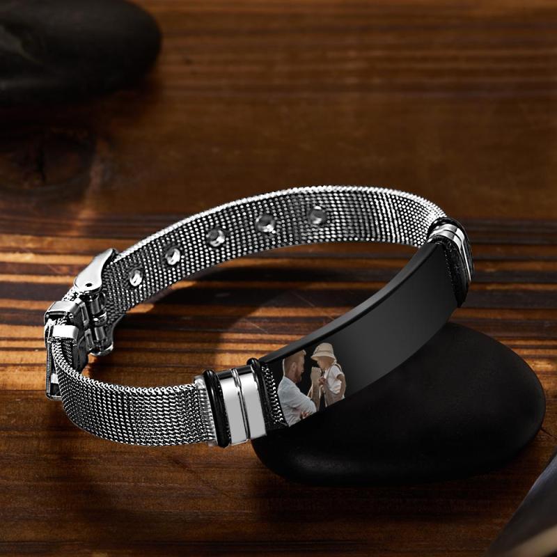 Customized Optional Photo Engraved Spotify Music Stainless Steel Bracelet Best Gifts For Men Gifts For Couples
