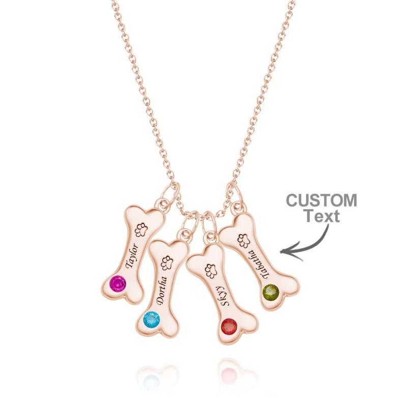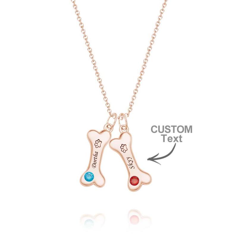 Engravable Bone Necklace With Birthstone Custom Pet Paw Pendant Gift For Pet Lovers