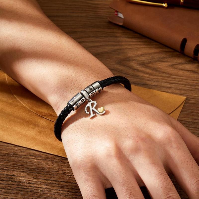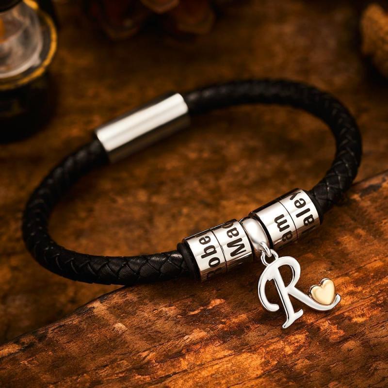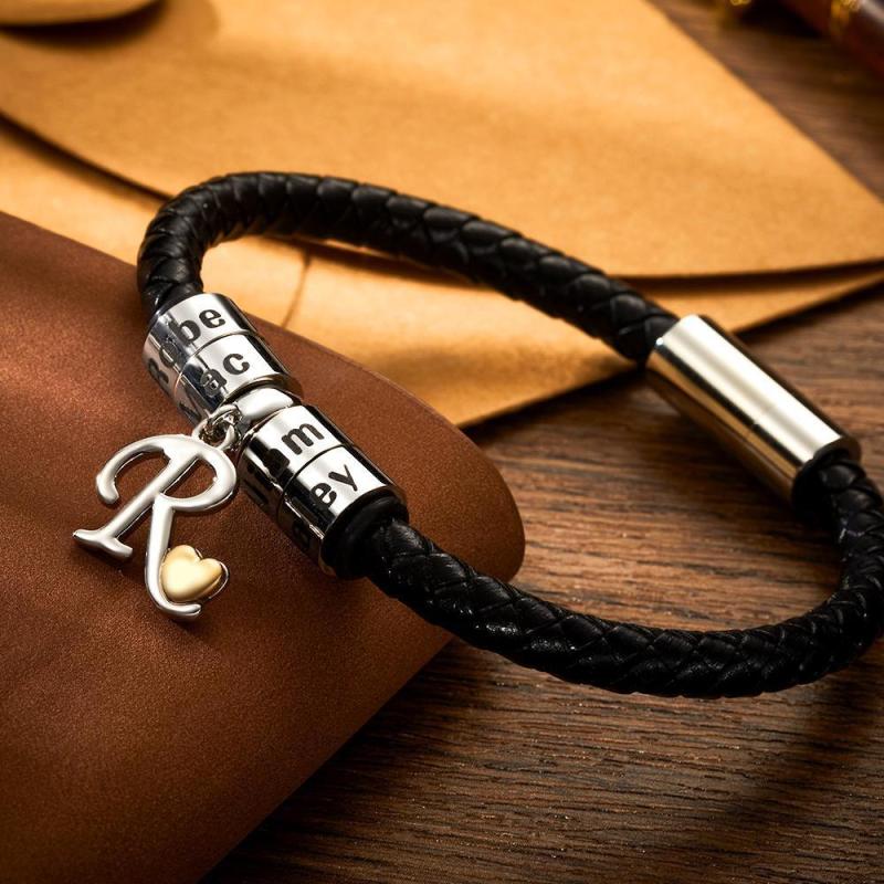 Engraved Bracelet Men's Bracelet Engraved Beads Charm Bracelet for Him Memorial Gifts